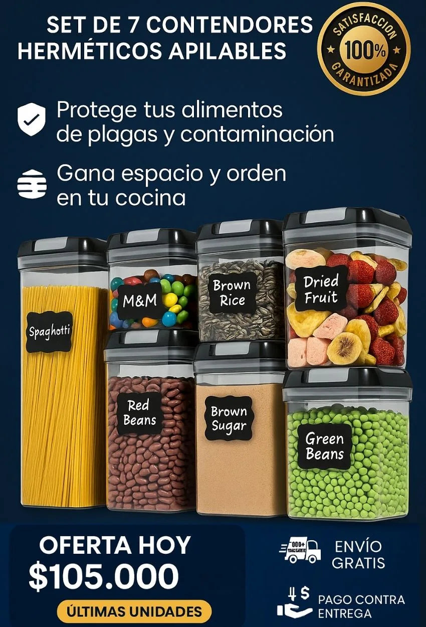 Con este set de 7 contenedores, tu cocina estará más ordenada y transmitirá frescura y limpieza
