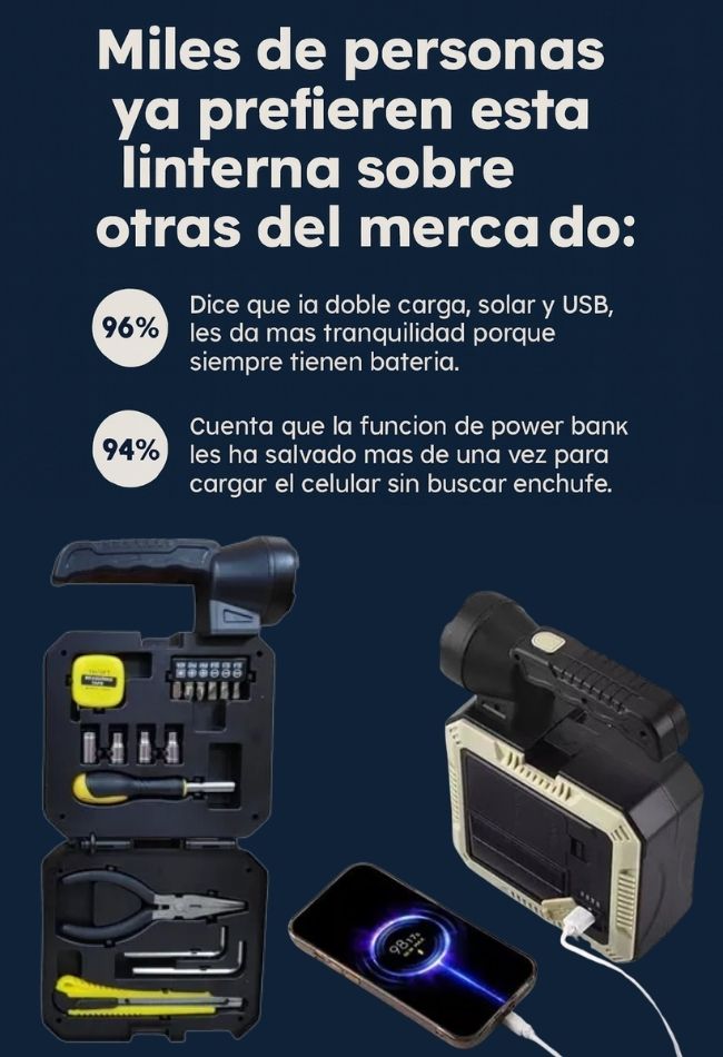 LumiTool™ linterna que también es cargador y caja de herramientas