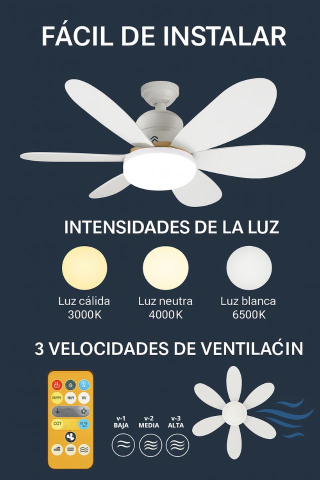 Este ventilador con luz LED y control remoto ofrece múltiples funciones que lo hacen destacar frente a los modelos tradicionales